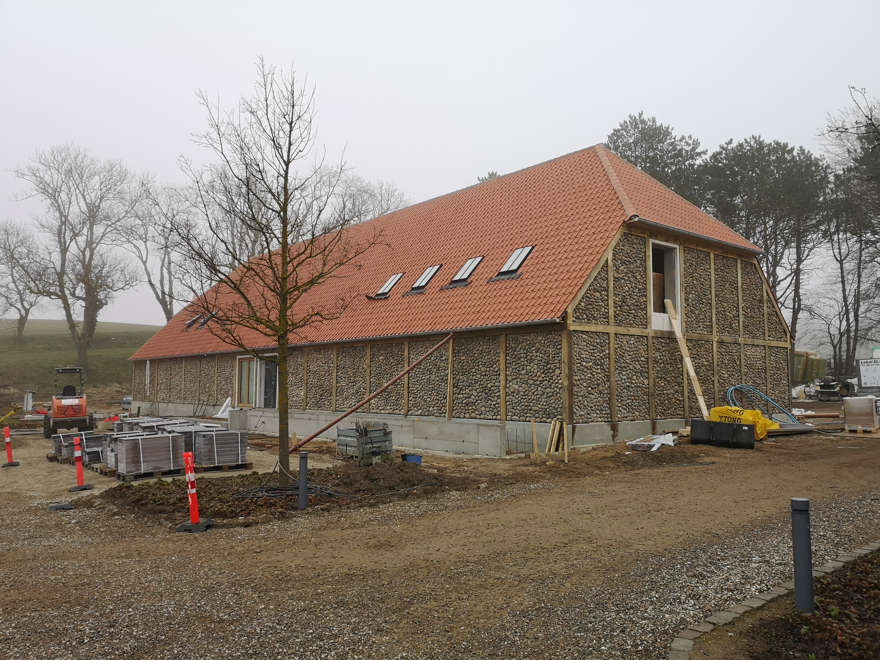 | Der opføres spa-bygning i to etager med kælder. Bruttoareal på 460 m²; 1.185 m² total. |